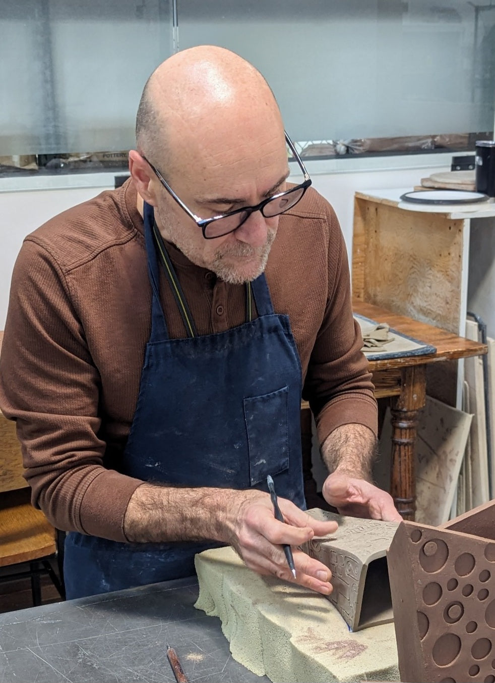 The vessels I create are a result of my efforts to transform clay, which is essentially cold, heavy mud, into beautiful and interesting shapes that reflect the sensation of the soaring towers of modern architecture and the fluidity, geometry, and expressionism of 20th century decorative and visual arts. Through ceramics I can bring into existence the images, forms, and shapes that are swirling in my head.